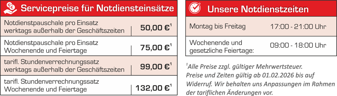 Durch langjährige Erfahrung, moderne Technik und eine strukturierte Vorgehensweise gewährleisten wir mit unserem Notdienst eine zuverlässige, sichere Lösung, wenn sie am dringendsten benötigt wird.