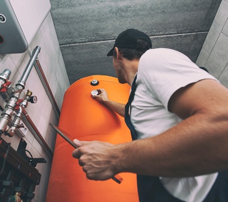 Heizungsfachmann führt ein Scheckheft